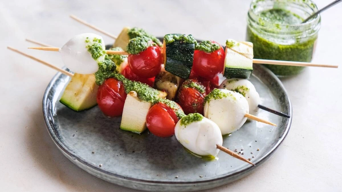 Быстрые шашлычки: цукини, черри и мини-моцарелла