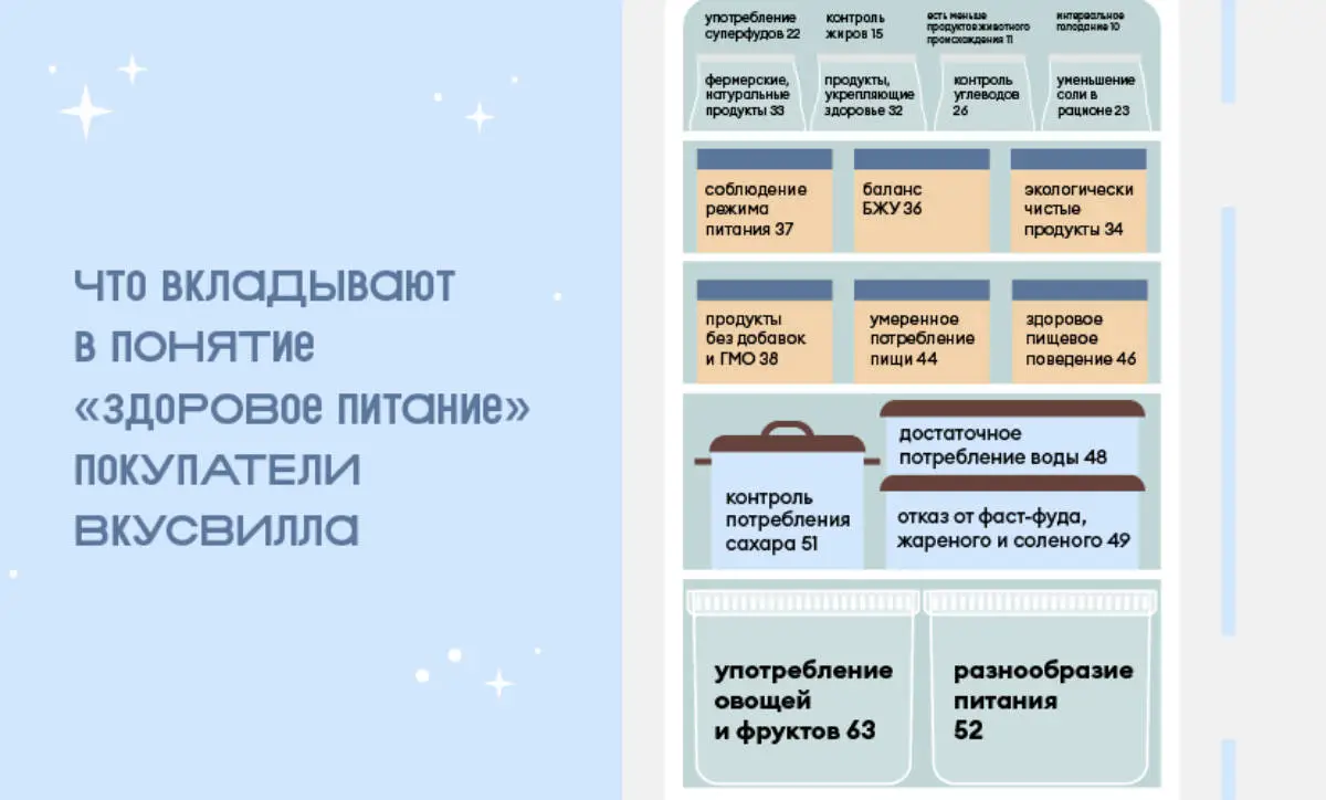 База и основа здорового образа жизни, по мнению наших респондентов, — еда. Точнее, здоровое питание. Его ещё называют правильным, сбалансированным и связывают с употреблением натуральных продуктов. Что вкладывают наши покупатели в понятие о здоровом питании?