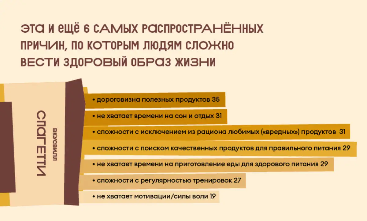 Словно споря с небольшой долей людей, которых по ЗОЖ-пути ведёт желание сэкономить, абсолютное большинство респондентов указывают, что «дороговизна полезных продуктов» становится основной помехой на пути к здоровому образу жизни.