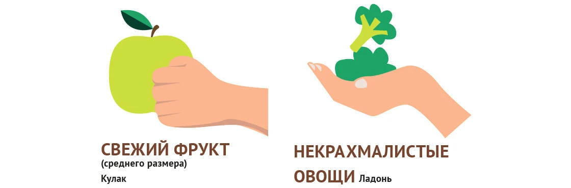 Это 5 взрослых порций размером с кулачок: порция для взрослого мужчины и ребёнка будут отличаться. Однако если у вас получится больше, будет больше и бонусов для здоровья. Кстати, в эту группу также могут входить ягоды и зелень.