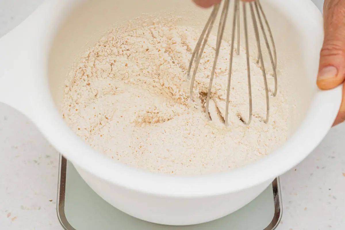 И перемешиваем их венчиком. Тогда точно не случится ситуации, что соль или те же дрожжи «сконцентрируются» в одной части теста, а где-то их будет недостаточно.