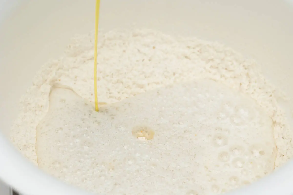 Затем прямо в миску вливаем воду и добавляем масло.