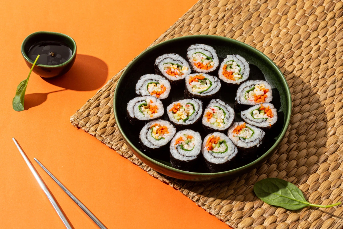 Кимбап — корейский вариант японских роллов. Это популярная еда в Корее, которую можно найти почти везде: от уличных лотков до ресторанов. Приготовить кимбап дома легко. В этом рецепте мы используем классические ингредиенты: рис, свежие овощи, омлет, а также добавляем куриную ветчину для дополнительной питательности и вкуса.