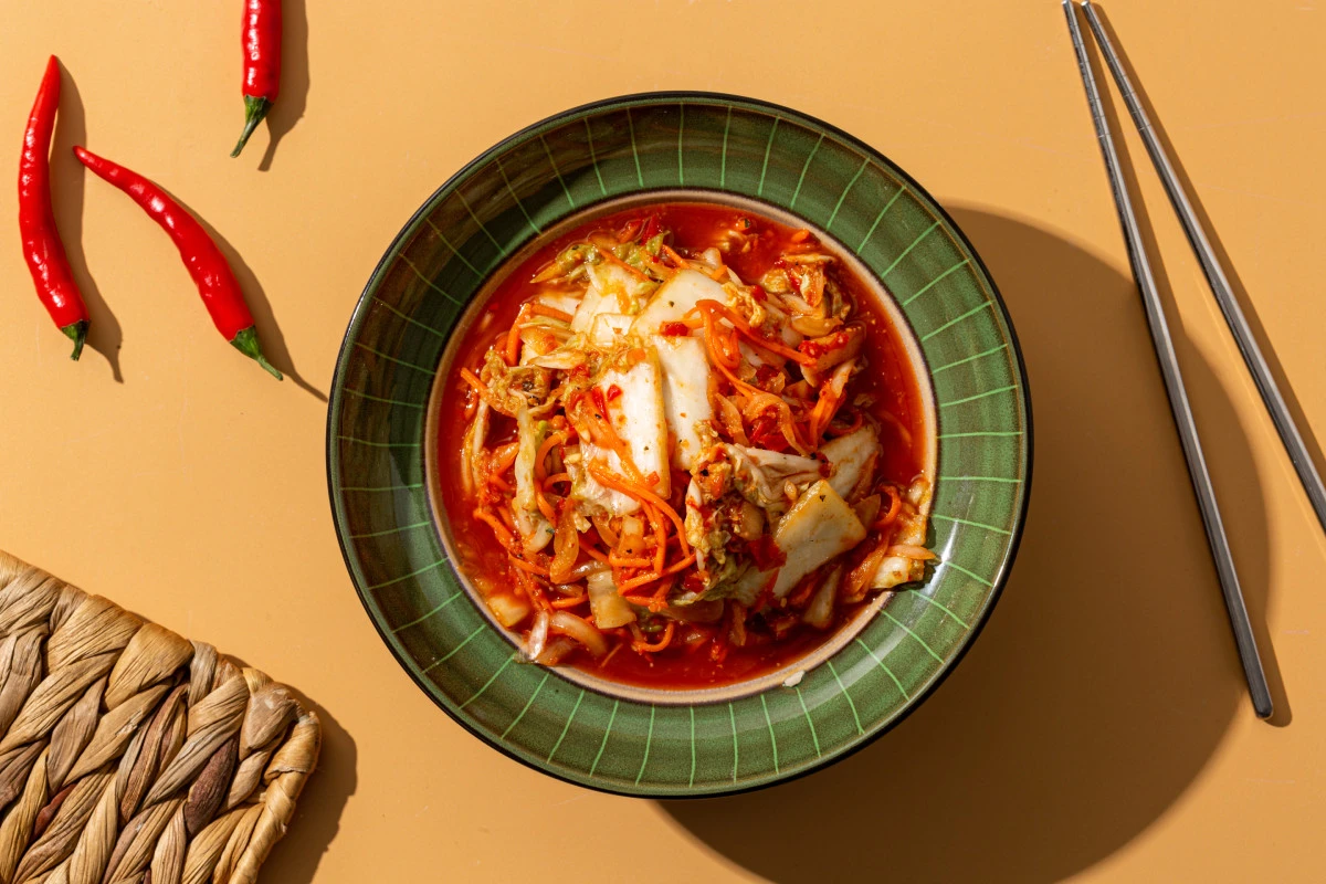 Кимчи, она же кимчхи, — столп корейской кухни. Это ферментированные овощи — чаще всего пекинская капуста, — приправленные множеством специй. Кимчи можно подать как лёгкую закуску, добавить к мясу в качестве гарнира или бросить в рамён.