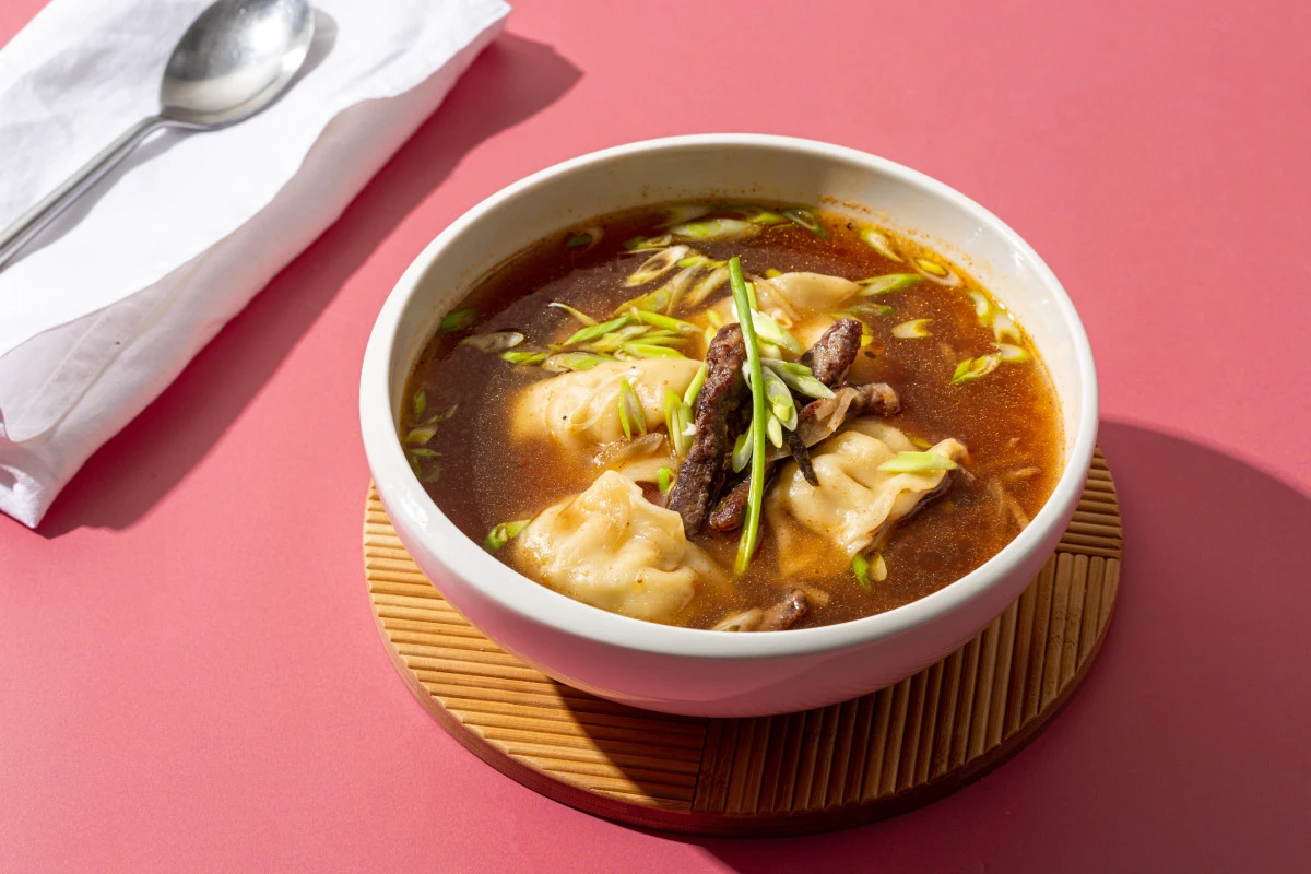 Горячие наваристые супы — гордость корейцев. В этом рецепте мы использовали готовые бульон и гёдза, поэтому приготовление блюда заняло совсем немного времени. Если захотите сделать суп более пикантным, добавьте в него капусту кимчи перед подачей.
