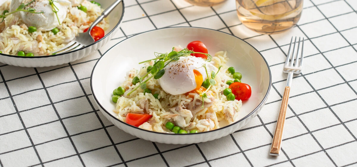 Главное преимущество этого блюда — его простота. Если заранее отварить рис, ужин собирается буквально за 10 минут. Лёгкая дымчатая нотка рыбы, ароматный рис и нежное яйцо пашот — минималистично, но настолько изысканно, что кажется, будто вы в ресторанчике где-то на берегу Средиземного моря.