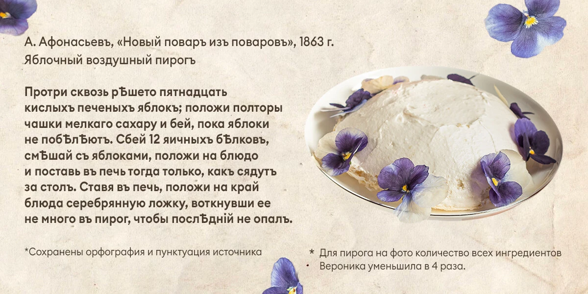 Предлагаем попробовать один из 160 рецептов, восстановленных Вероникой, — воздушный яблочный пирог.