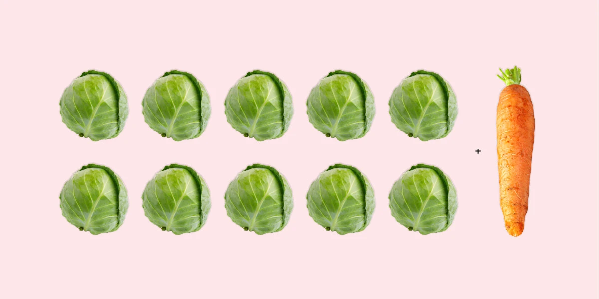 Картинка для запоминания пропорций: десять частей капусты и одна моркови