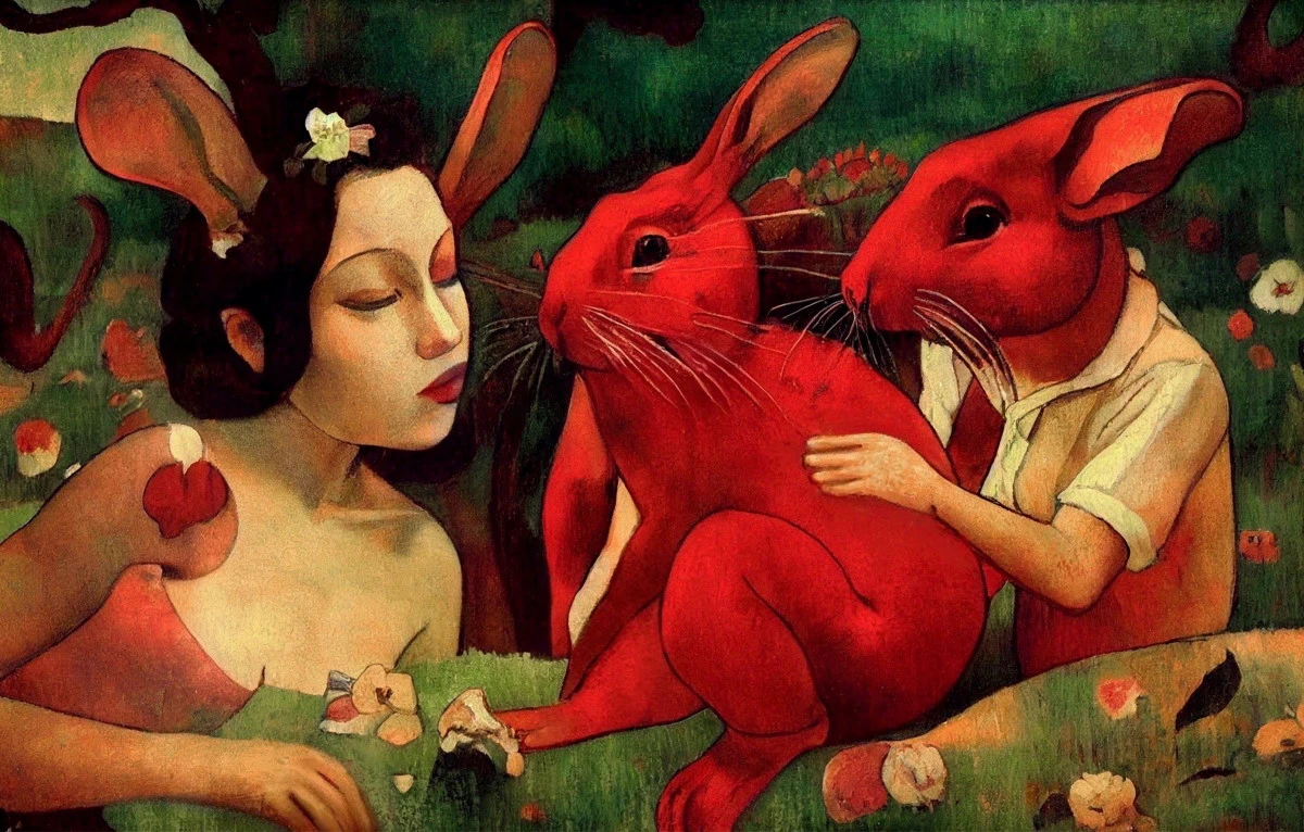 Картина художника ARTLIFE FEST 2023 иллюстрирует радость от трапезы в фантазийной компании. Однако под поверхностью образа в работе скрывается интрига и трепет — сложность человеческого интереса, одновременно волнующая и пугающая. Завтрак героев скромный — яблоки, которые разбросаны по траве.