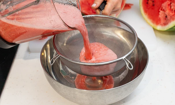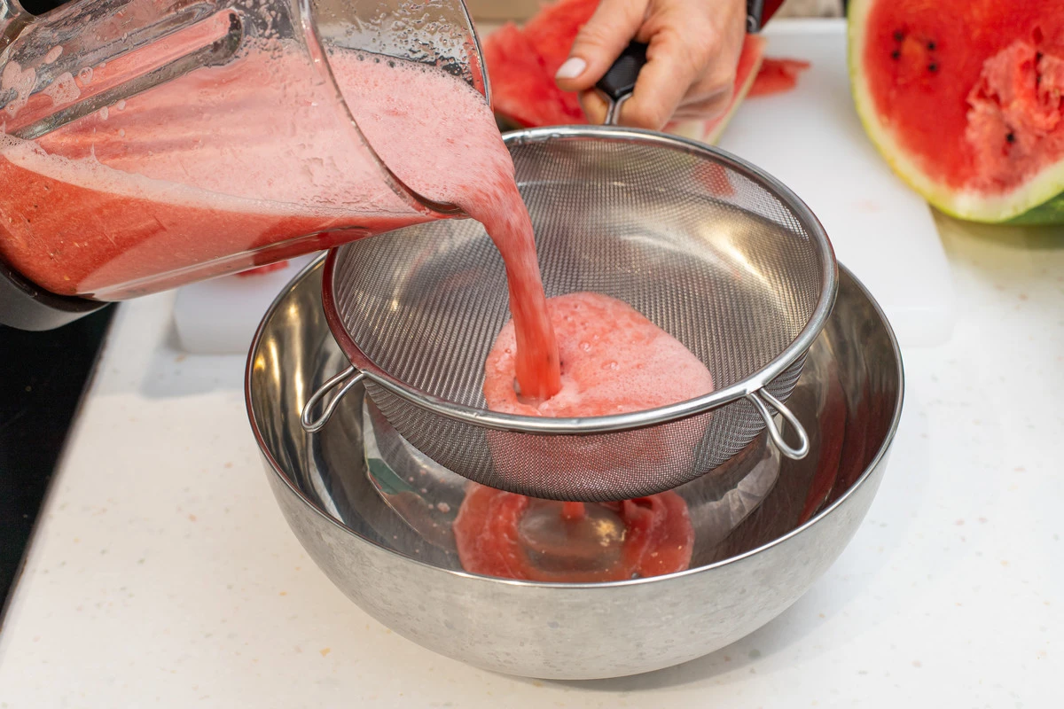 Процедите полученную смесь через сито, чтобы удалить косточки.