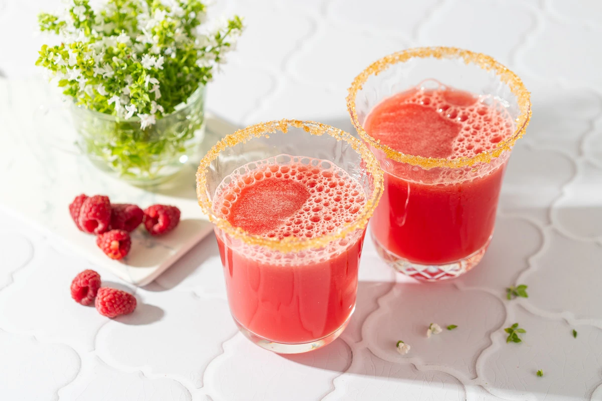 Аккуратно разлейте по стаканам с сахарными ободками и подавайте аквафреску охлаждённой. Этот напиток можно подавать со льдом или даже сразу добавить лёд в блендер при измельчении.