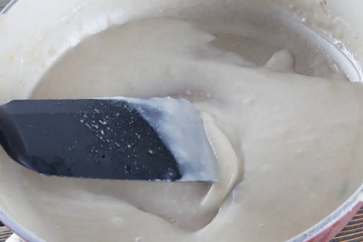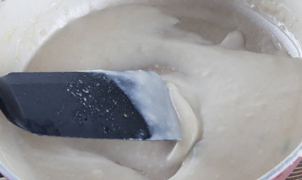 Вылейте мучную смесь в кастрюлю, хорошо размешайте.