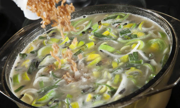 Сохапур - очень нежный и необычный суп, кавказская разновидность лукового супа. В этом рецепте порей используется практически целиком, вместе с зеленой частью.