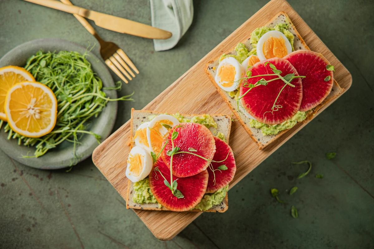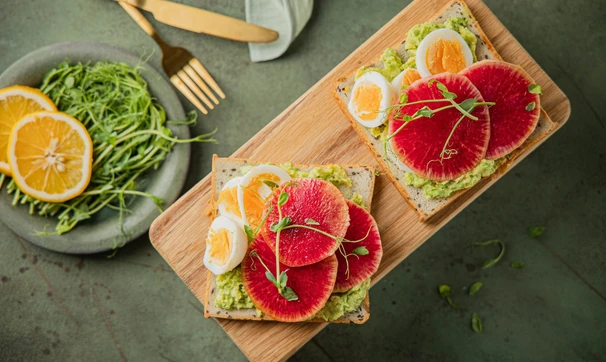 Рецепт «Авокадо-тосты с арбузной редькой и яйцами»