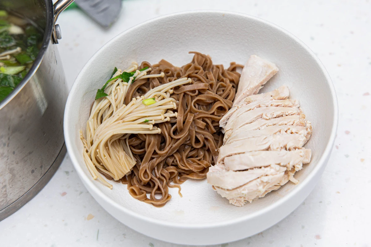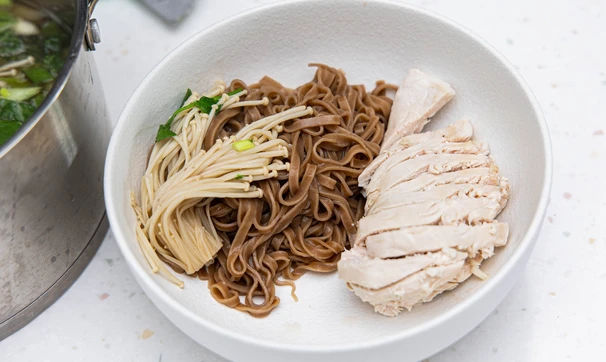 Рецепт «Азиатский суп с грибами эноки и гречневой лапшой»