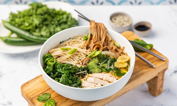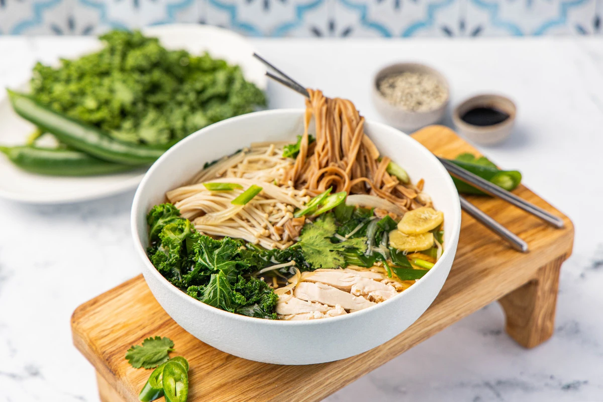 Азиатский суп с грибами эноки и гречневой лапшой