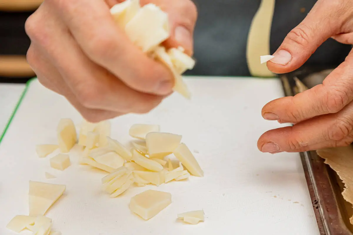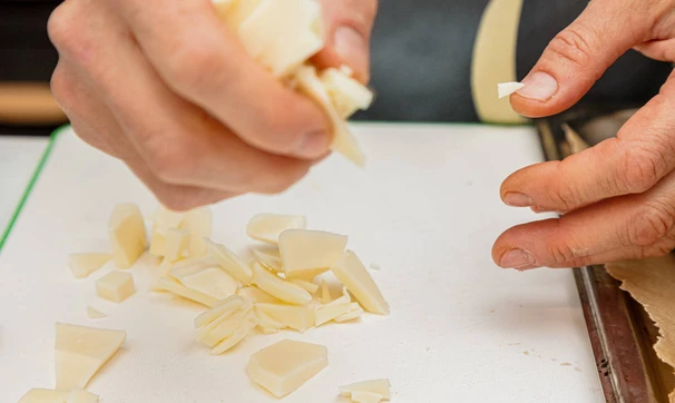 Сыр нарежьте небольшими кусочками или измельчите на тёрке, кинзу и чеснок нарежьте мелко.