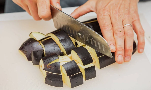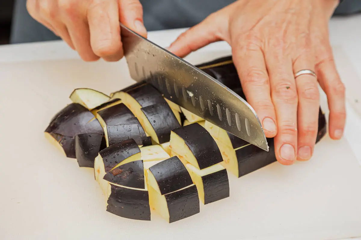 Баклажаны нарежьте крупными кубиками.