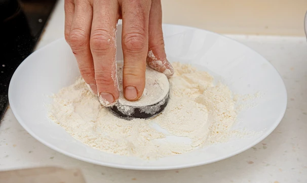Обваляйте кружочки в муке.