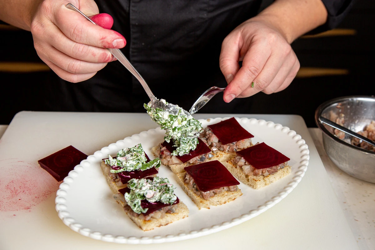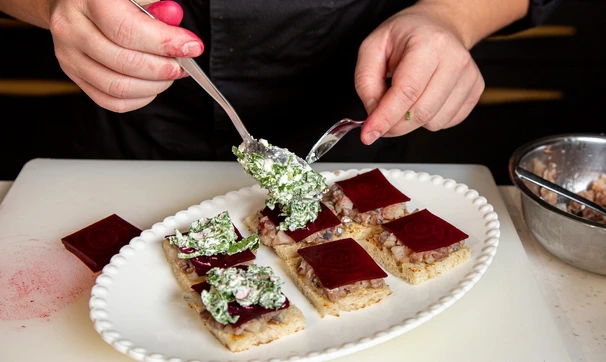 Башенки из свеклы с сельдью