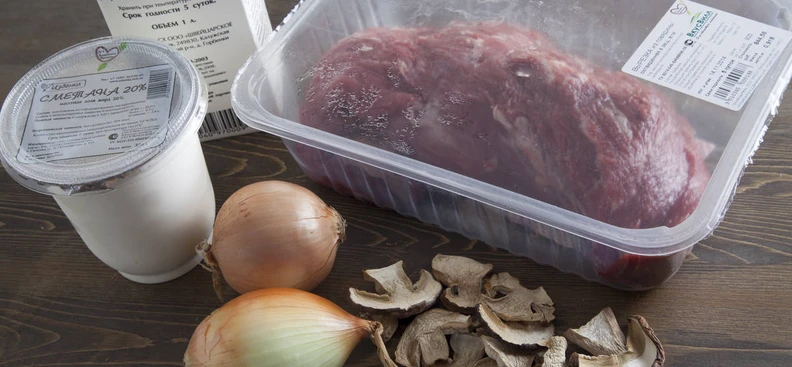 Бефстроганов с белыми грибами, шаг 1/6