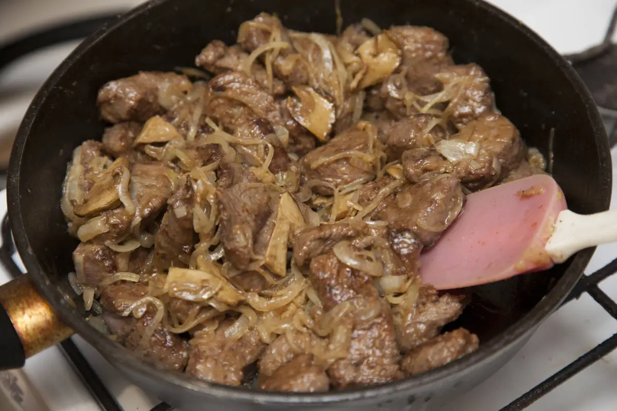 Бефстроганов с белыми грибами, шаг 4/6