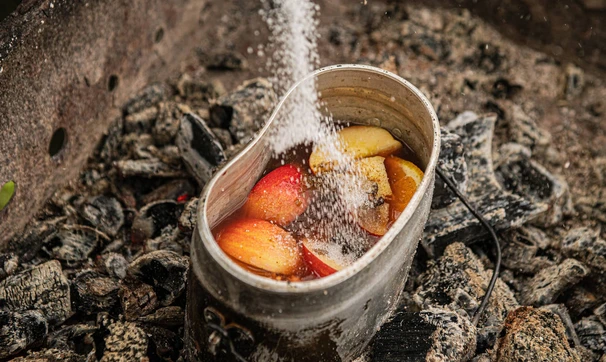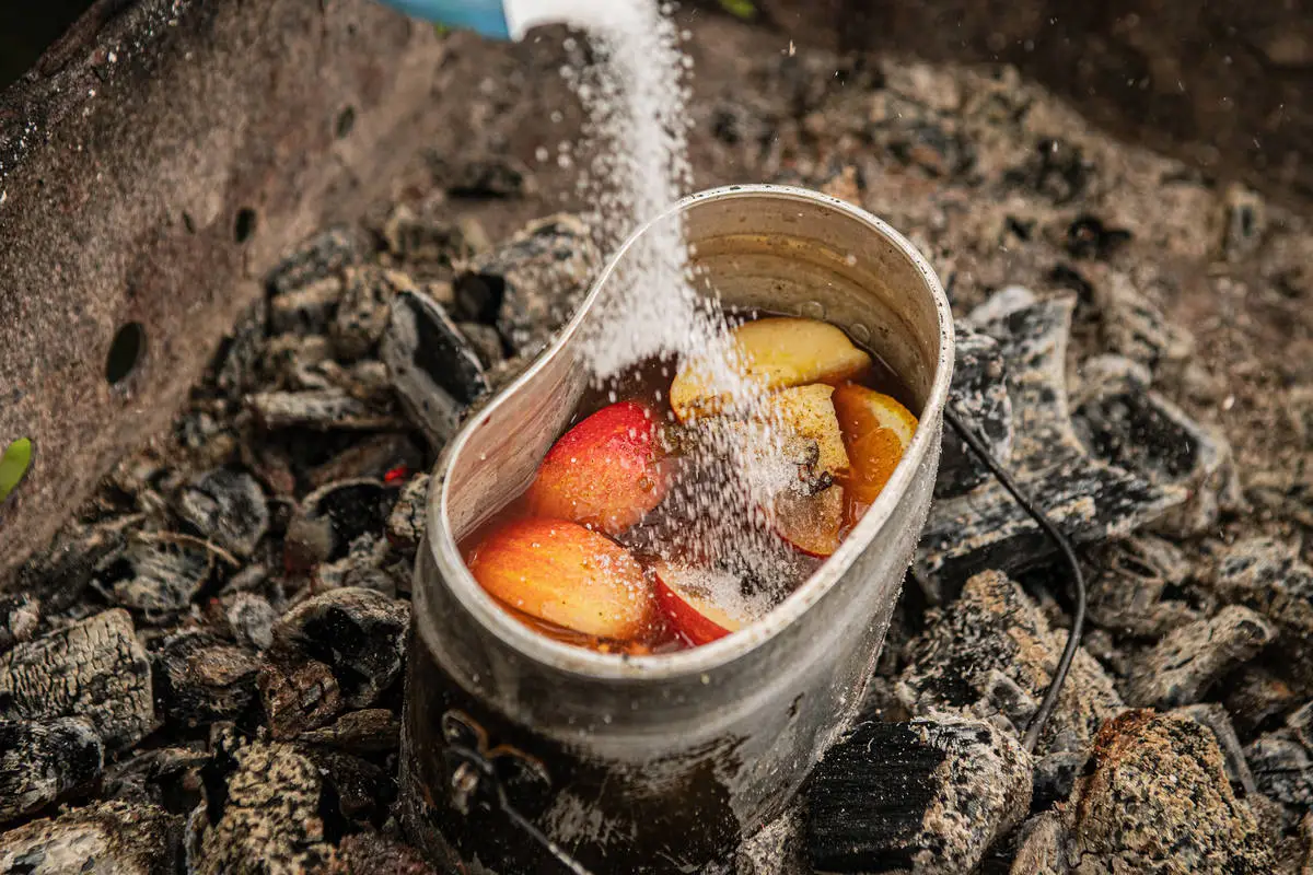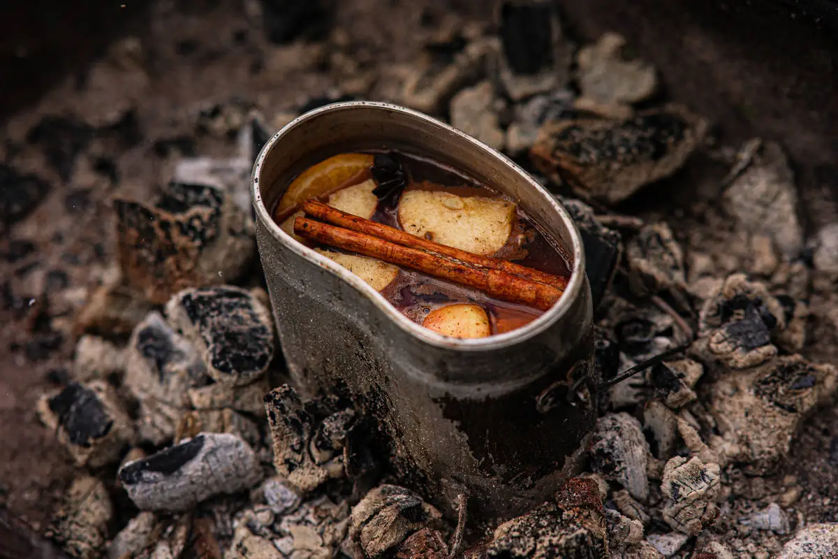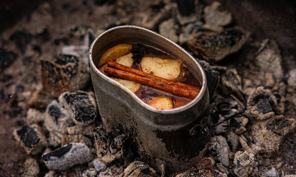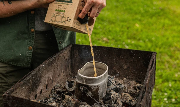 В котелок налейте оба вида сока и установите в горячие угли или повесьте над костром.