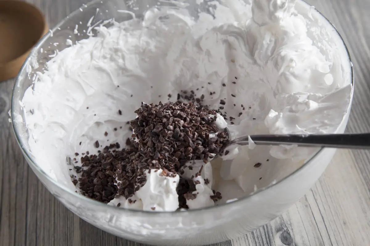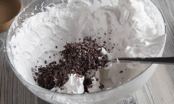 Какао-крупка очень удачно оттеняет шоколадной горечью сладкий вкус безе и приятно похрустывает на зубах.