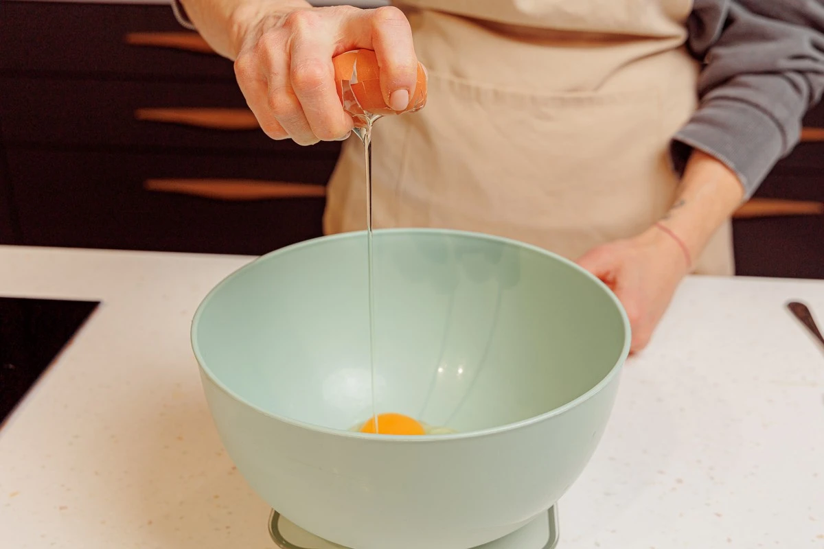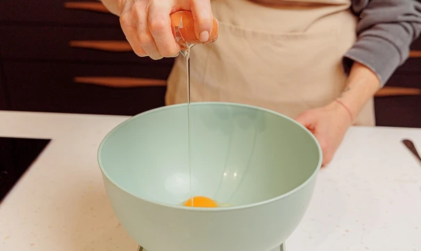 Разбейте в миску яйца.