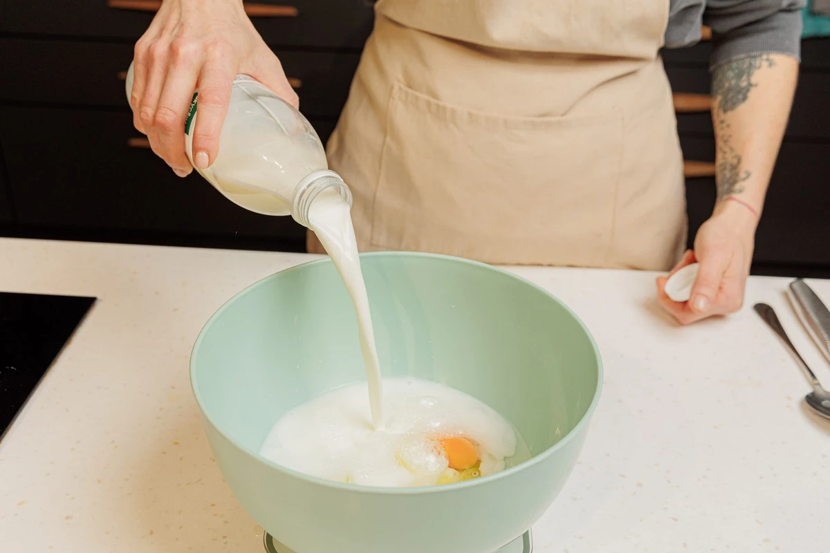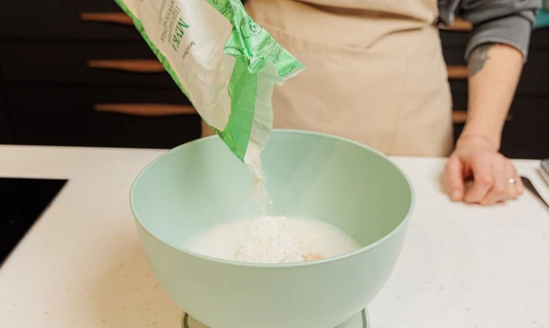Налейте воду и молоко.