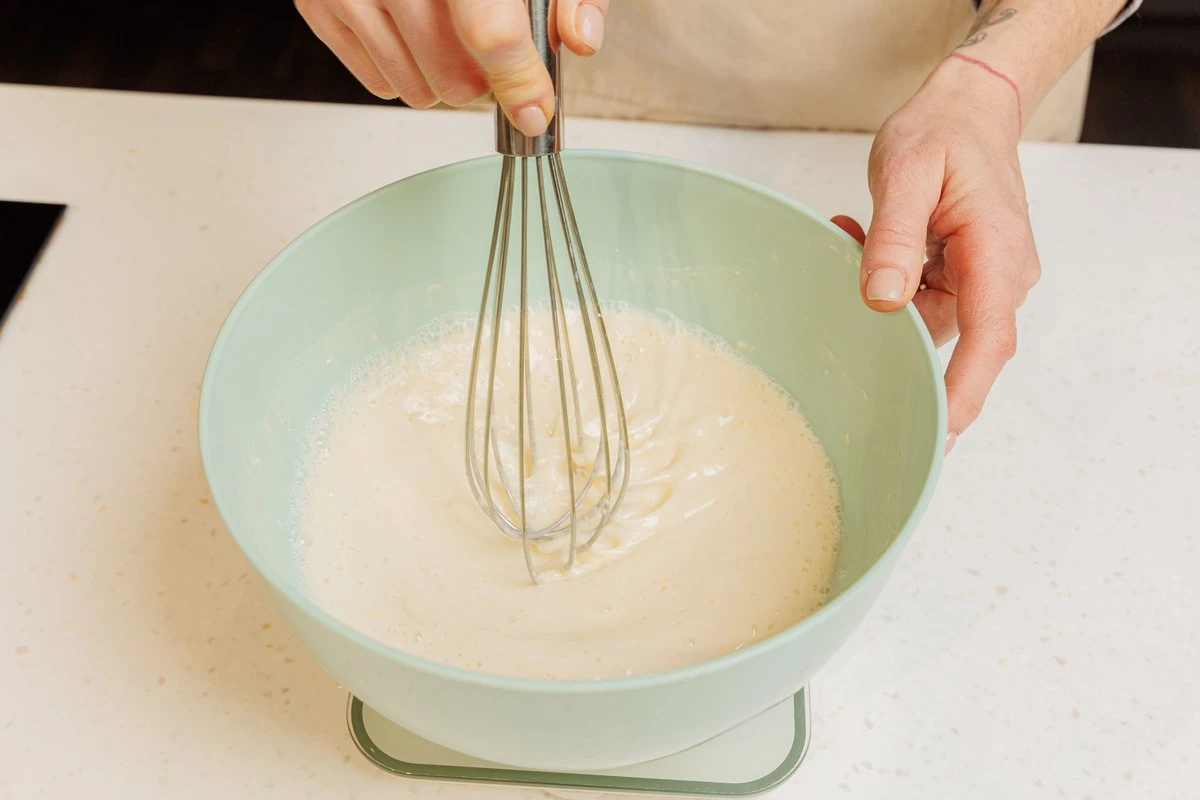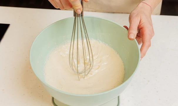 Тщательно смешайте венчиком до однородности, чтобы не было комочков. Можно воспользоваться стационарным или погружным блендером с обычной насадкой.