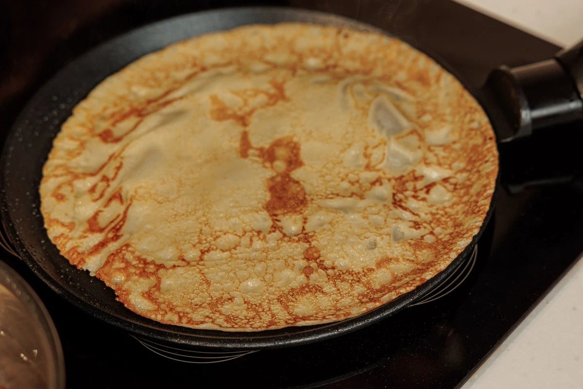 Если вы любите более толстые блины, но не хотите заморачиваться с дрожжами, попробуйте добавить в тесто манную крупу. Она не особо чувствуется, но блины получаются более зернистыми, воздушными и, конечно, вкусными.