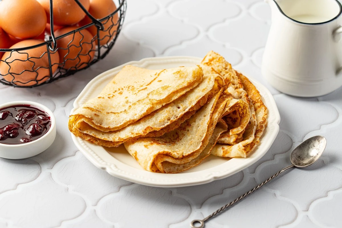 Подавайте блины с любимыми соусами и начинками.