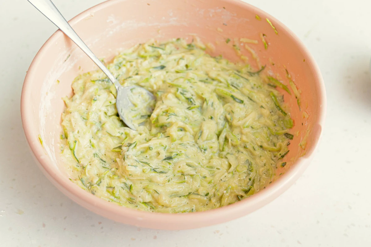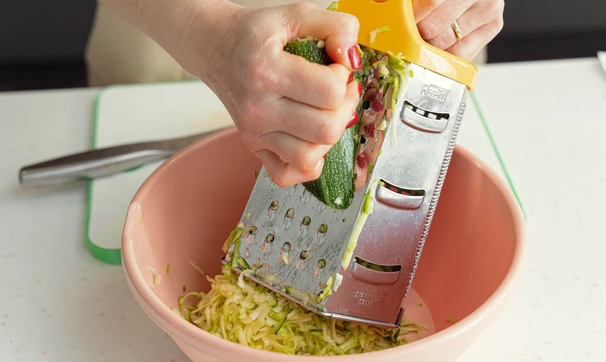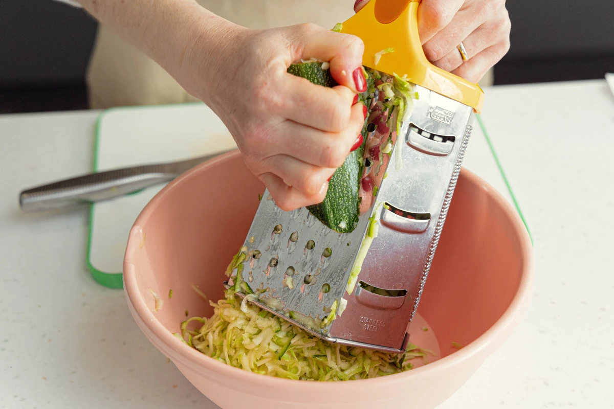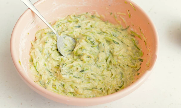 Кабачки измельчите на тёрке, посолите и оставьте.
