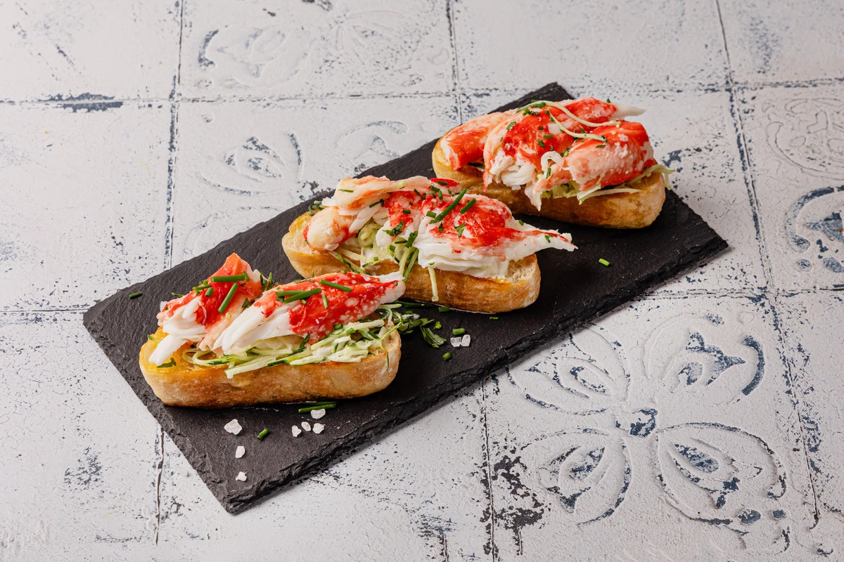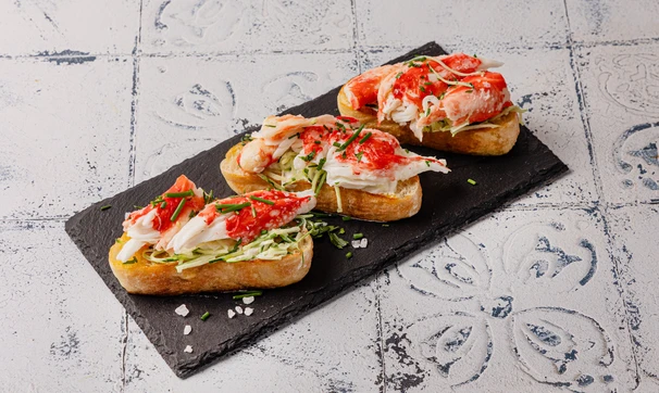 Брускетта с крабом и страчателлой — на случай, когда хочется чего-то изысканного и особенно вкусного.