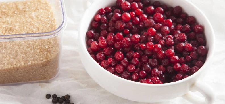 Пряный и островатый кисло-сладкий брусничный соус подойдет практически к любому мясу, но лучше всего сочетается с запеченной свининой, говядиной, уткой и тефтелями. Готовится соус просто!
