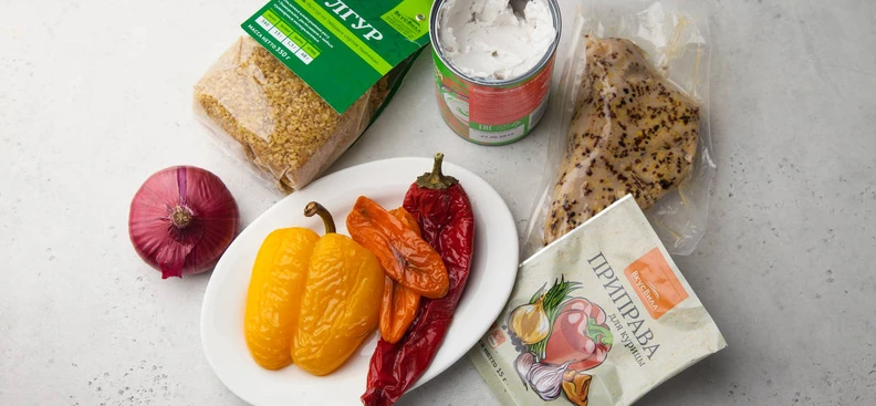Подавайте булгур горячим с печеным перцем и грудкой, посыпьте мелко-нарезанной петрушкой.