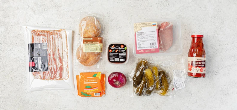 В рецепте используются товары из категорий: Хлеб и выпечка; Мясо, птица; Колбаса, сосиски, деликатесы; Овощи, фрукты, ягоды, зелень; Консервация; Масла, соусы, специи, сахар и соль
