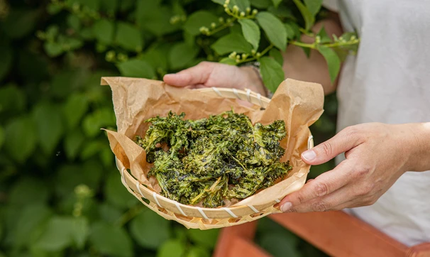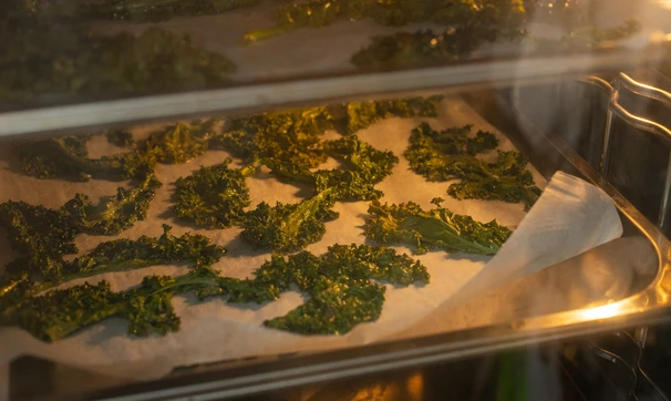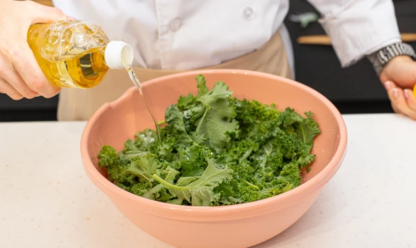 Чипсы из кейла — здоровая и небанальная альтернатива обычным, готовятся они очень просто. Масло можно использовать оливковое или кунжутное, а также добавить специи на свой вкус.