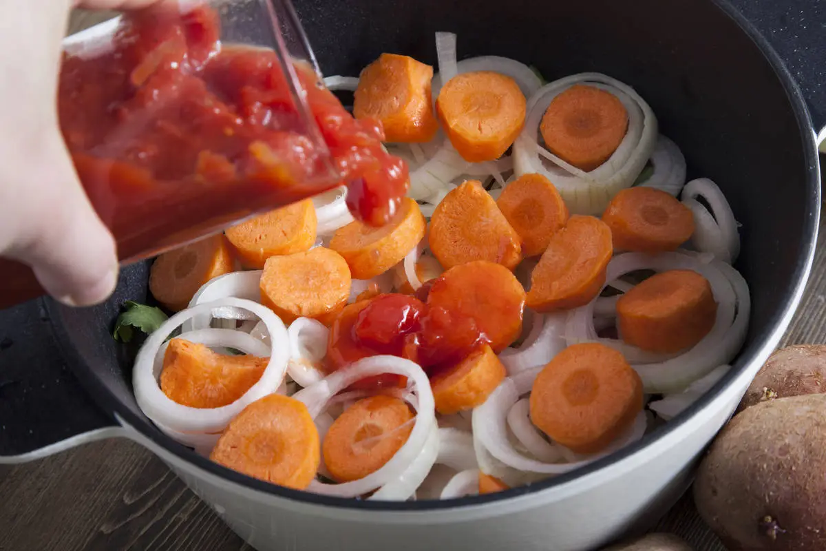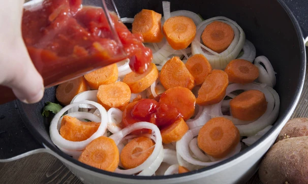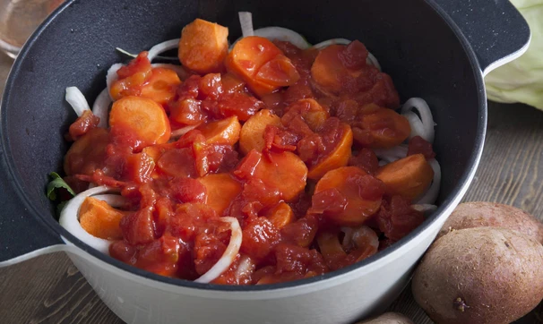 ...помидоры (можно использовать томатный продукт — около 200 мл)...