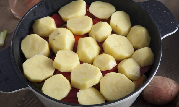 Очень простое в приготовлении, сытное и ароматное блюдо узбекской кухни — в нашей семье просто хит! Больше всего мне нравится, что не нужно ничего обжаривать — мясо просто тушится в овощных соках и получается очень нежным.