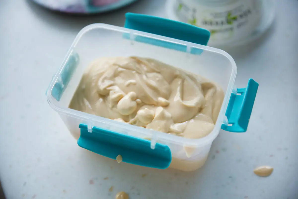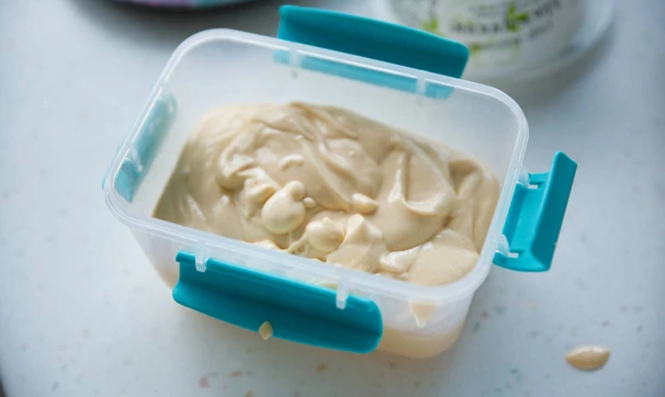 Переложите смесь в контейнер и уберите в морозилку примерно на 8 часов. Такое мороженое получится более твёрдым, чем магазинное. Для того, чтобы сделать более мягкое мороженое, можно использовать мороженицу либо взбить смесь ещё раз после 2-3 часов в морозилке, а затем снова заморозить.