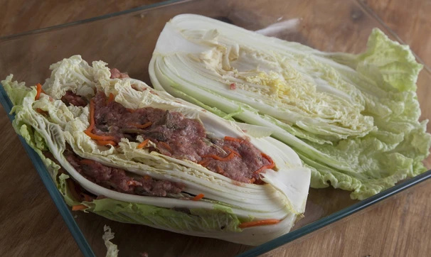 Необычное блюдо, похоже на наши голубцы, но с китайским акцентом. Очень ярко смотрится на столе, попробуйте!