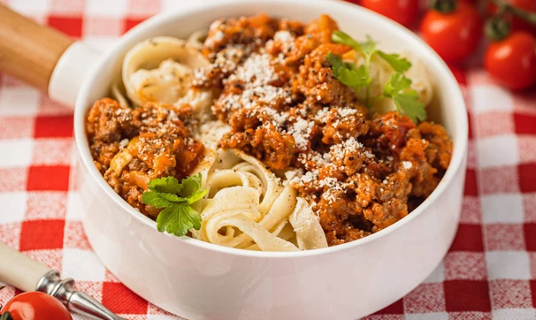 Классический рецепт пасты по-болонски предполагает долгое приготовление соуса, мы же предлагаем более быстрый вариант.