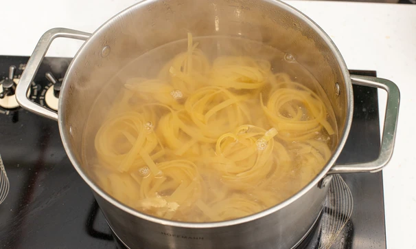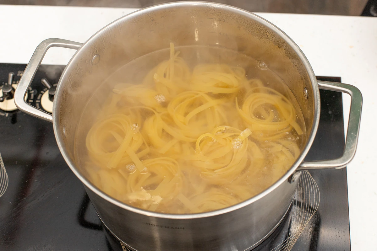 Поставьте кипятиться воду в большой кастрюле для пасты.