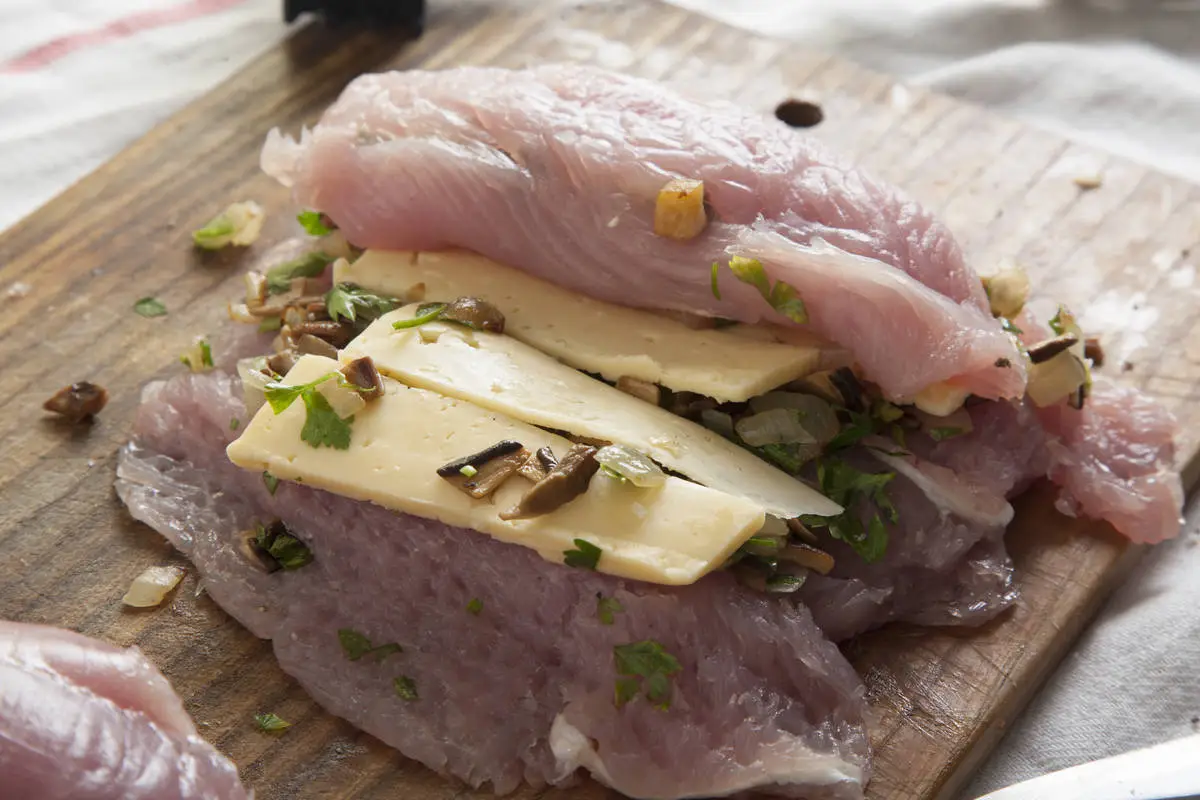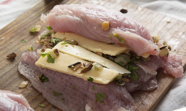 Филе индейки, фаршированное грибами и сыром