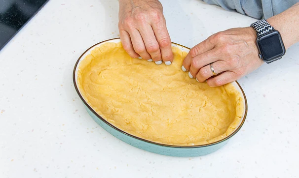 Распределите тесто в форме для выпечки и уберите в холодильник на 15 минут.