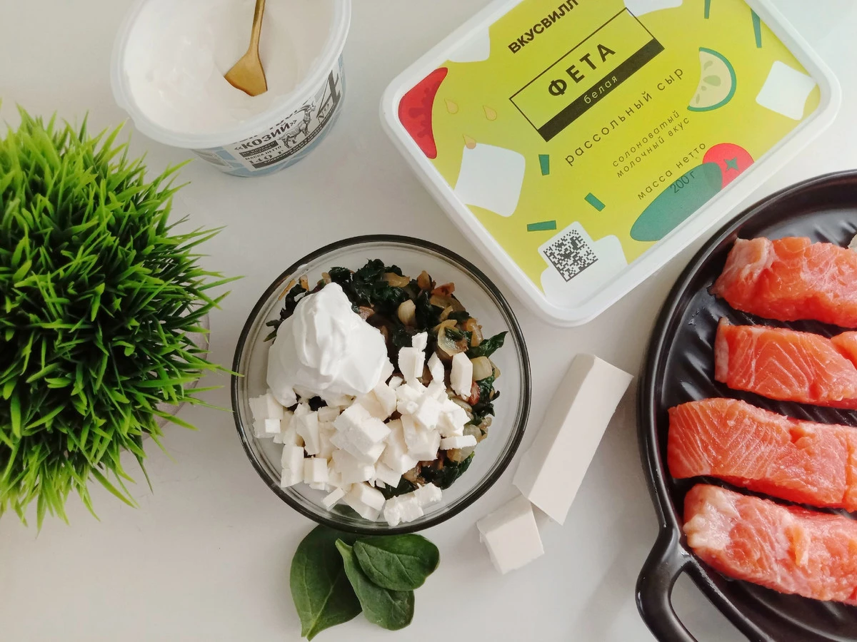 Рецепт «Форель, фаршированная шпинатом, фетой и козьим сыром»