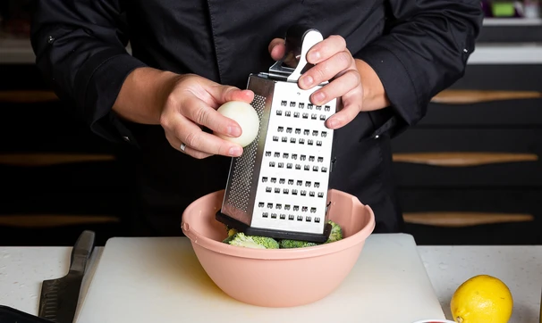 Лук натрите на мелкой тёрке добавьте к брокколи.