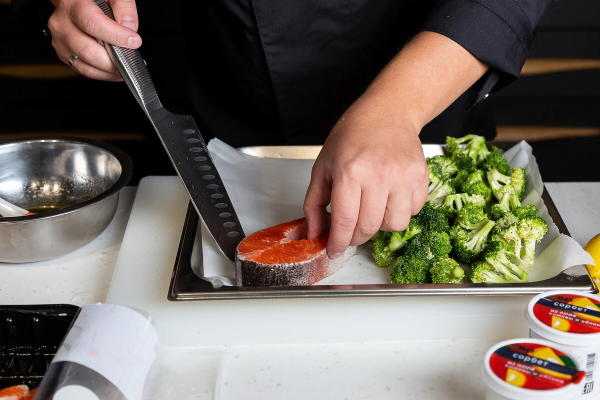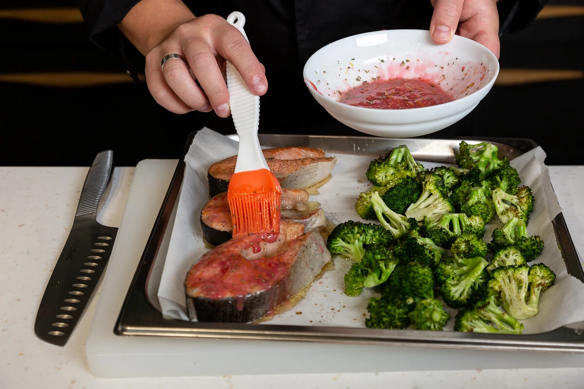 Рецепт «Форель, запечённая с брокколи с соусом из сорбета»